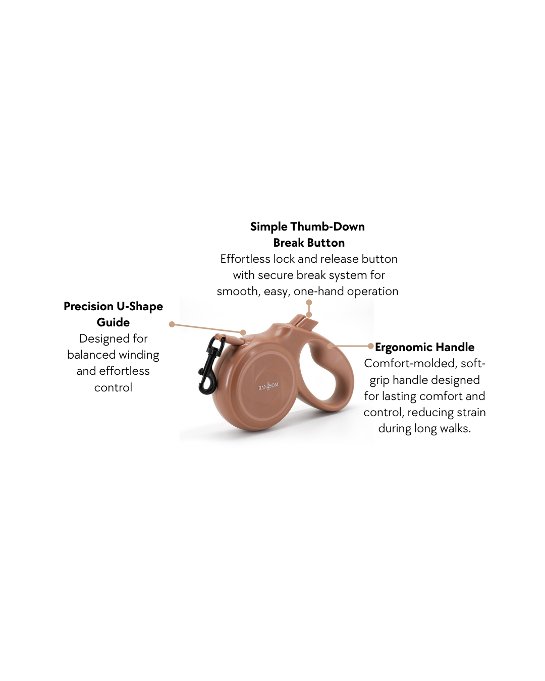 We design bespoke-inspired retractable leashes produced in limited quantities, thoughtfully crafted in monochrome tones and custom-matched details that blend simplicity, intention, and quiet beauty. Inspired by the harmony of skin, fur, and earth tones.